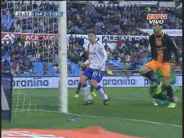 El cuadro blanco comenzó ganando por 2 a 0 al conjunto “che”, pero los valencianos empataron el encuentro y estuvieron a punto de voltear el marcador. Los goles del Zaragoza fueron hechos por Apono de penal a los 5 minutos del primer tiempo y de Hélder Postiga a los 32”, Valencia igualo con doblete de Jonas a los 36” y 69”. Cabe resaltar que desde el minuto 77 los albos jugaron con 10 hombres hasta el final del partido.