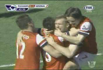 Los Gunners lograron sacar los tres puntos y alcanzar puestos de clasificación directa a la Champions League al derrotar por la mínima diferencia al Fulham. El único tanto del partido fue marcado por Per Mertesacker a los 43 minutos del primer tiempo.