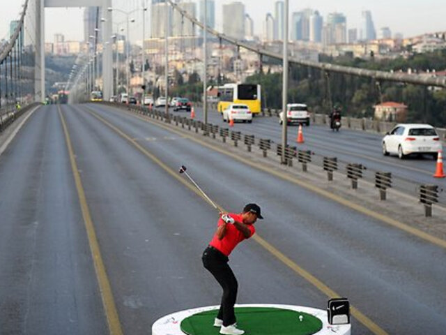 La municipalidad de Estambul cerró el tráfico en uno de los carriles del puente que cruza el Bósforo para que el jugador de golf pudiera realizar la hazaña que fue transmitida por la cadena NTV en directo.