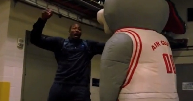 Y es que el buen ambiente que se vive en los Rockets de Houston, es tanto que hasta la misma mascota del equipo se la pasa inventando burlas para divertirse en el camarín.