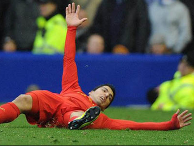 El delantero uruguayo Luis Suárez volvió al centro de la polémica tras provocar una falta en el área con la que el Liverpool empató 2-2 contra Aston Villa en Anfield Road.