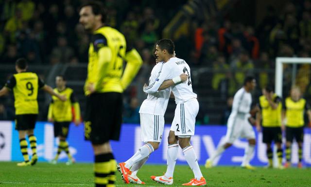 El delantero alemán Marco Reus anotó ambos tantos a los 23 y 36 minutos, complicándole la clasificación a los merengues que llegaban como favoritos. Sin embargo, Ángel di María pudo haber cambiado la historia, ya que cuando iba 0-0 falló un penal. La ausencia de Cristiano Ronaldo se sintió.