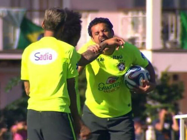 Mundial 2014: Fred imita a Suárez y muerde a Marcelo en el entrenamiento de Brasil