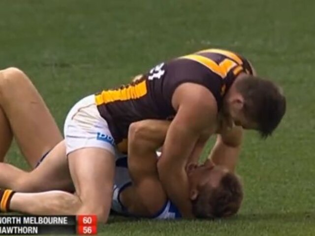 El fútbol australiano es un deporte de características similares al rugby, que se juega con un gran contacto físico entre los deportistas. Pero Brian Lake, de los Hawthorn Hawks, se pasó. Intentó morder en el cuello a su rival Drew Petrie, del North Melbourne. El agresor fue sancionado con cuatro fechas de suspensión.