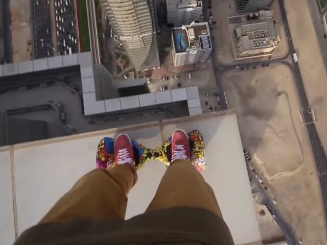 Las escalofriantes maniobras de un joven en la cima de un enorme edificio en Dubai son virales en Internet.