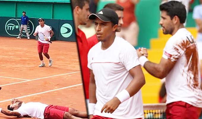 Por el Play Off al Grupo Mundial de la Copa Davis, la dupla peruana conformada por la pareja Jorge Brian Panta y Sergio Galdos venció 2-0 a la Suiza, de Luca Margaroli y Sandro Ehrat. Los peruanos ganaron el primer set 7-5 y en el segundo 7-6 y Perú se puso adelante el marcador 2-1. En el primer set los peruanos vencieron por 7-5 luego de estar abajo. Con una actuación superlativa de ambos compatriotas pudieron imponer su buen juego.