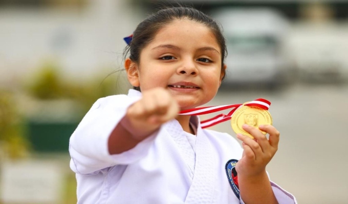 Sara Valentina Moscaiza Melendres, es una escolar del Callao que con sus 8 años representará a nuestro país en un campeonato internacional de karate.