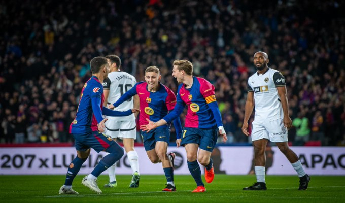 Ganó, goleó y gozo. Barcelona en condición de local y por la fecha 21 de la Liga Española, el combinado culé vapuleó 7-1 a Valencia. Con este triunfo, el equipo dirigido por Hansi Flick se ubica en la tercera posición de la tabla a siete unidades del líder del certamen, Real Madrid.