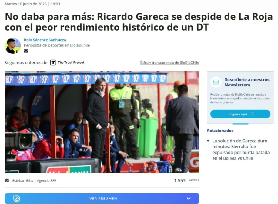 La decepción entre los hinchas chilenos es evidente, con muchos exigiendo la renuncia inmediata del técnico. En redes sociales, comentarios como “Gareca, renuncie y entréguese a la justicia” reflejan la frustración de una afición que ve esfumarse otro Mundial. La prensa no se quedó atrás, y medios como La Tercera lo calificaron como “el peor técnico en la historia de Chile”, debido a su bajo rendimiento, con apenas un 20% de efectividad. “El Tigre se iluminó tarde y rearmó el equipo en el segundo tiempo, pero fue insuficiente”, escribió el diario, cuestionando su lectura de los partidos.