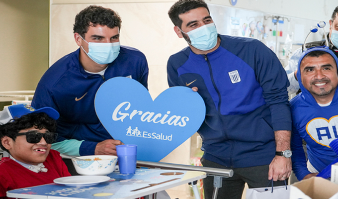 Una mañana distinta se vivió en la Unidad de Pediatría del Hospital Guillermo Almenara de Essalud, donde día a día el personal asistencial trabaja incansablemente para devolver la salud a niñas y niños con diagnósticos complejos. En medio de tratamientos y terapias, la visita de integrantes de los equipos profesionales de fútbol y vóley del club Alianza Lima llenó de esperanza y emoción a los pequeños.