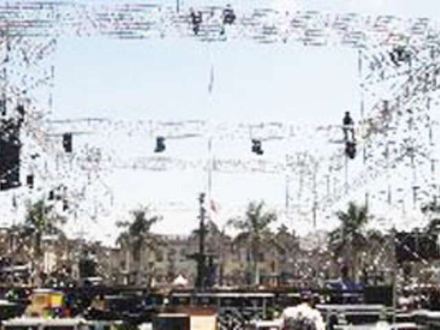 En la Plaza de Armas de Lima también se ha dispuesto la colocación de estructuras metálicas de soporte para los equipos de sonido, los juegos de luces, la rampa de llegada a la meta del Rally Dakar 2012 en el jirón Carabaya y una tribuna al costado.