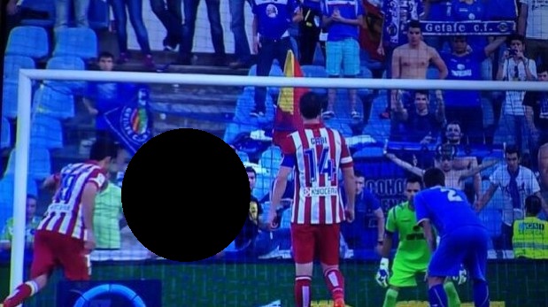 El brasileño Diego Costa erró desde los doce pasos luego de que un singular hincha lo distrajo con una insólita acción. El suceso se produjo a los 66 minutos del partido entre el Atlético de Madrid contra Getafe, correspondiente a la Liga BBVA.