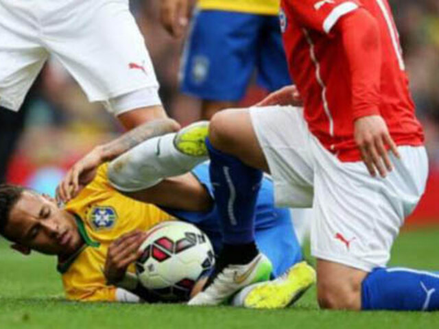 En una acción de juego, el crack brasileño con la pelota denominada sufrió la aspereza del jugador chileno, que en busca del balón no le perdonó nada y en todo momento lo marcó al milímetro.