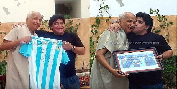 El ex astro del fútbol, Diego Armando Maradona, estuvo de visita en Túnez para grabar una publicidad y aprovechó su viaje para visitar a Ali Bennaceur, el juez que dirigió el partido de cuartos de final entre Argentina e Inglaterra en el Mundial de México 1986, y que validó el gol que fue bautizado como ‘La mano de Dios’.