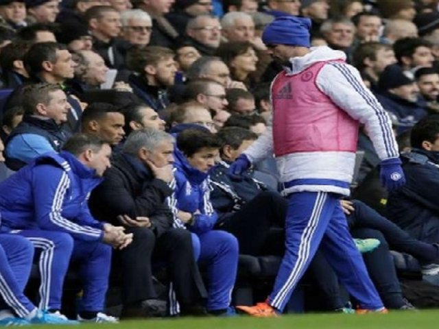Diego Costa era suplente en el partido que disputaban el Chelsea y Tottenham por la Premier League. Mourinho lo puso a calentar en la recta final del encuentro, pero cuando ya estaba llegando el descuento, el técnico optó por no recurrir al hispano brasileño y le indicó que vuelva al banco de suplentes.