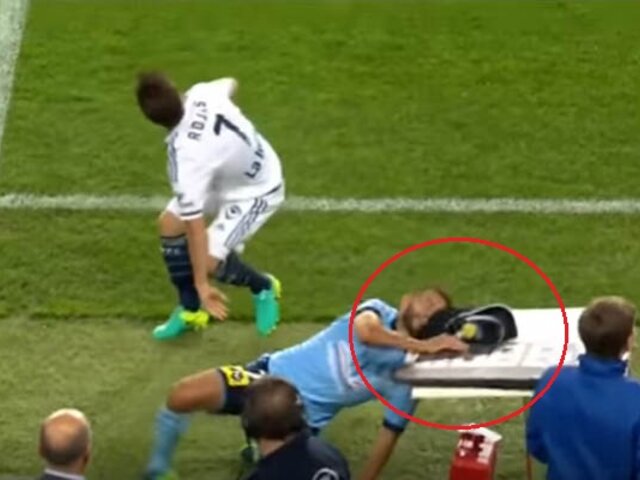 VIDEO: futbolista se estrella contra una mesa en pleno partido