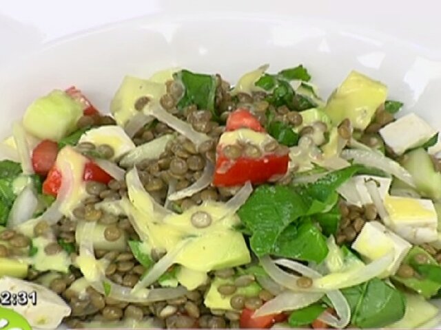 La lenteja es un alimento muy rico en hierro y fibra, y es mucho más deliciosa y nutritiva preparada en ensalada. En el siguiente bloque gastronómico de “Día a día, el magazine de la tele”, nuestra chef Silvia Fernández Maldonado nos enseña los pasos para preparar esta estupenda ensalada para el almuerzo e incluso la cena.