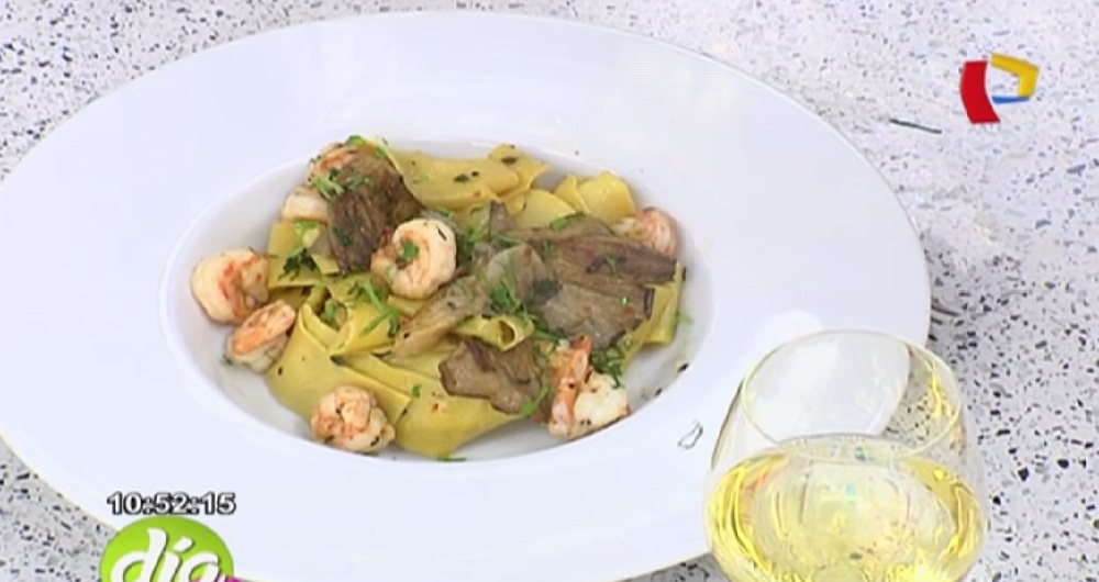La gastronomía italiana llegó al bloque de cocina de ‘Día a día, el magazine de la tele’ gracias a nuestro chef Vittorio Davia, quien enseñó paso a paso cómo preparar ‘Le pappardelle funghi e gamberetti’, platillo italiano hecho a base de hongos ostras, perejil, ají limo, aceite de oliva y langostinos.