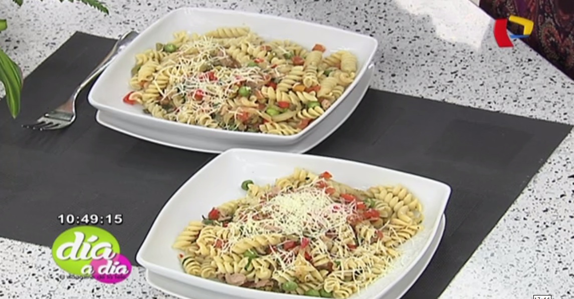 Si quieres engreír a tu familia con una exquisita comida pero no dispones de mucho tiempo para mostrar tus habilidades culinarias, hoy en el bloque gastronómico de “Día a día, el magazine de la tele”, nuestra chef Silvia Fernández Maldonado nos enseña una receta fácil de preparar en casa. Se trata del Fusilli con atún, una pasta hecha a base de albahaca, alcaparras, arvejas, cebolla, tomate, culantro, mantequilla, aceitunas verdes, entre otros.