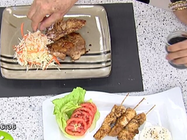 En el programa de hoy, nuestra chef Angélica Sasaki reveló sus secretos culinarios para enseñar la preparación de las chuletas de cerdo y brochetas en salsa teriyaki.
