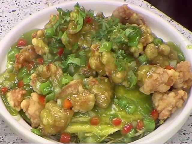 Nuestro chef Félix Loo nos enseñó paso a paso la preparación del aeropuerto norteño, que consiste en pollo salteado en salsa norteña, pimientos rojos, holantao y culantro.