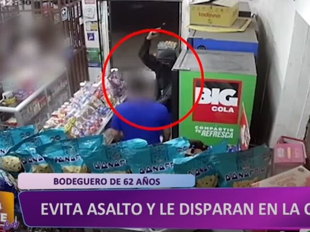 El incidente tuvo lugar en la cuadra 13 del jirón García Naranjo y quedó registrado por las cámaras de seguridad del establecimiento. En las imágenes, se observa cómo un delincuente encapuchado llega al lugar armado y forcejea con el propietario de la bodega en un intento por despojarlo de las ganancias del día.