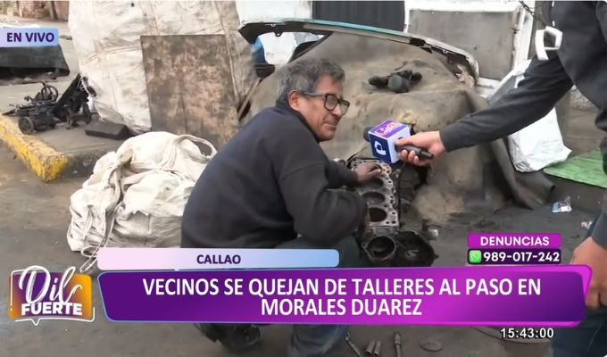 Las cámaras de Dilo Fuerte llegaron hasta el lugar en mención y pudieron corroborar la presencia de numerosas combis estacionadas en plena vía pública esperando a ser reparadas por los "talleres al paso" que operan en la zona.
