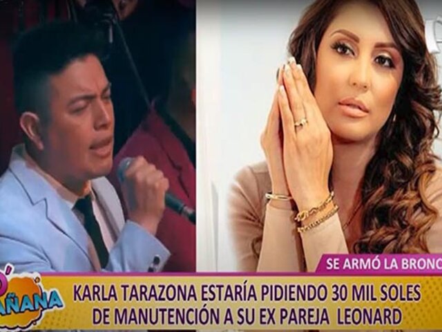Se armó la bronca. La conductora y locutora de radio Karla Tarazona anunció que demandará a su expareja Leonard León por falta de pago de la pensión para sus dos hijos, así lo dijo en el programa de Adriana Quevedo, D´Mañana.