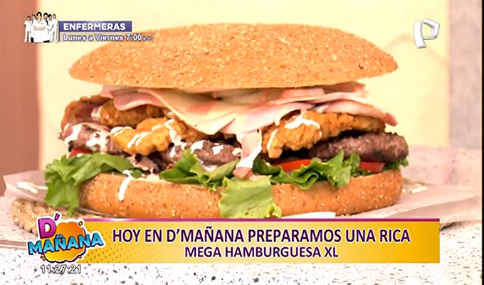 La cocina en D’Mañana inicia la semana con una exquisita receta: una deliciosa mega hamburguesa tamaño XL para compartirlo en familia. A manos del talentoso chef Junior Herencia de Buchi Pastelerías, en esta secuencia conocerá los simples pasos para sorprender a la familia e invitados con una riquísima y económica hamburguesa saludable.