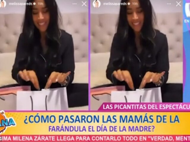 Melissa Paredes fue sorprendida por su pareja, quien grabó el momento en que ella recibió los regalos que le dio por este día especial.