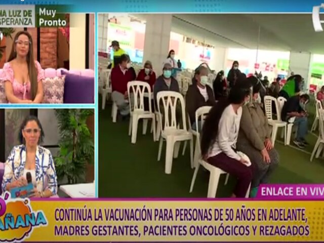 Un equipo de D' Mañana estuvo en el Estadio Municipal Tiahuanaco, ubicado en Santa Anita, donde se viene desarrollando la vacunación contra la COVID-19 a personas mayores de 50 años, embarazadas, pacientes oncológicos y rezagados.