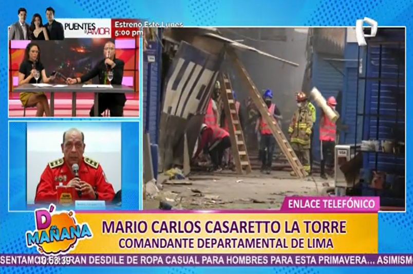 El comandante departamental de Lima, Mario Carlos Casaretto La Torre, sostuvo un enlace telefónico con D’Mañana para pronunciarse respecto al incendio ocurrido en un centro ferretero del mercado 'Unicachi', ubicado en el distrito de Comas.