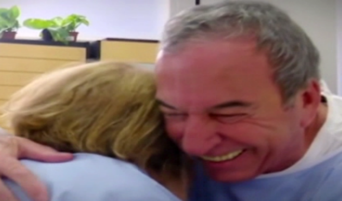 El artista llegó hasta el hospital donde ella se encontraba internada en España, y haciéndose pasar por un paciente que tenía vendado el rostro, se acercó hasta ella para conversar y, finalmente, revelar su verdadera identidad en un conmovedor video que se hizo viral en la red.