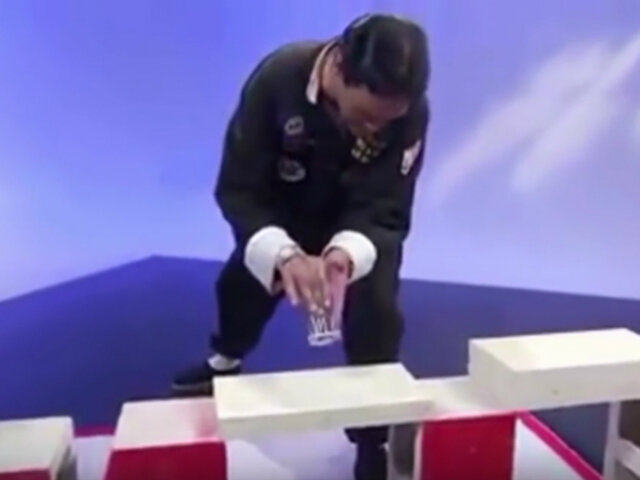 El “experto” en artes marciales hacia su demostración de fuerza rompiendo unos bloques de concreto, cuando el conductor quiso comprobar la dureza de uno de los bloques y lo partió por la mitad con apenas tocarlo.