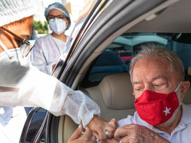 El expresidente de Brasil, Luis Inácio Lula da Silva, recibió el último sábado desde su auto en la ciudad de Sao Paulo, la primera dosis de la vacuna contra el covid-19 del laboratorio Coronavac.