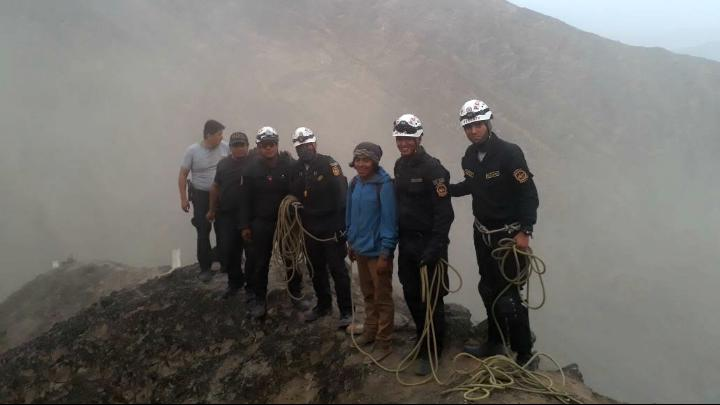 Jesús Trisolini y Edwin Salazar quedaron atrapados en una accidentada pendiente, fueron ubicados por el Escuadrón de Emergencia de la Policía.