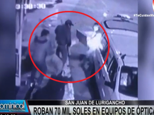 Cámaras de seguridad captaron el preciso momento en que delincuentes ingresaron a una óptica y se llevaron equipos valorizados en 70 mil soles. El hecho ocurrió en la urbanización Manco Inca, en San Juan de Lurigancho.
