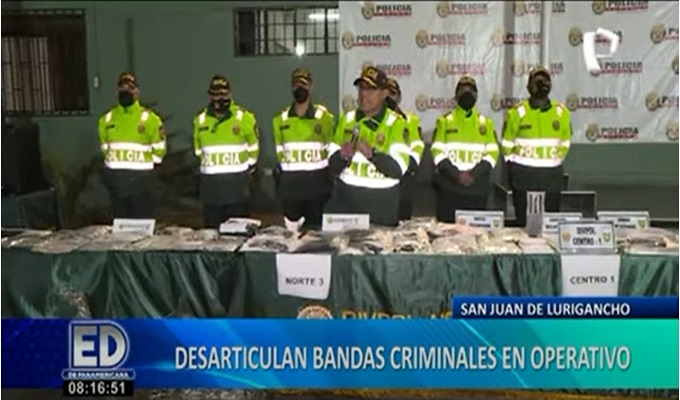 La Policía Nacional del Perú logró desarticular varias bandas delincuenciales que se dedicaban al robo a mano armada, raqueteo y venta de droga durante un operativo realizado en las últimas 24 horas en San Juan de Lurigancho.