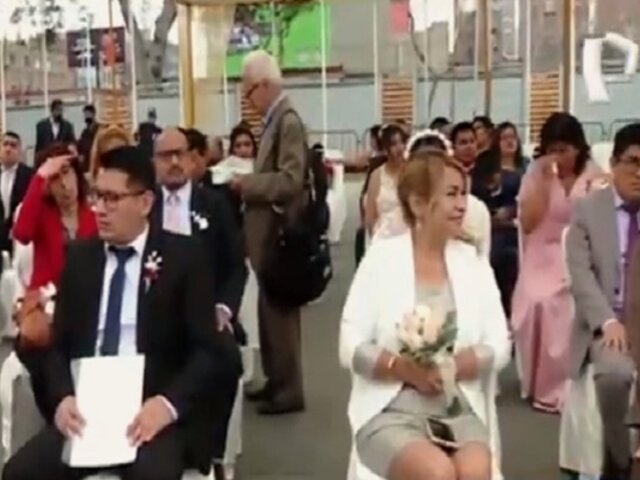 Más de 80 parejas celebraron su amor al contraer nupcias en la plaza Túpac Amaru en el distrito de La Victoria como parte de un matrimonio comunitario durante la tarde de este último sábado.