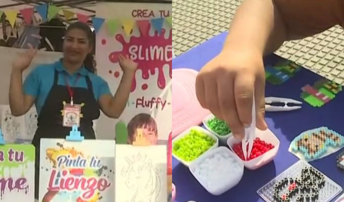 Dentro de los productos destacan los peluches de personajes icónicos, slime, juguetes artesanales y más. Los expositores exponen que esta feria se ha desarrollado gracias al apoyo de la Municipalidad de Pueblo Libre.