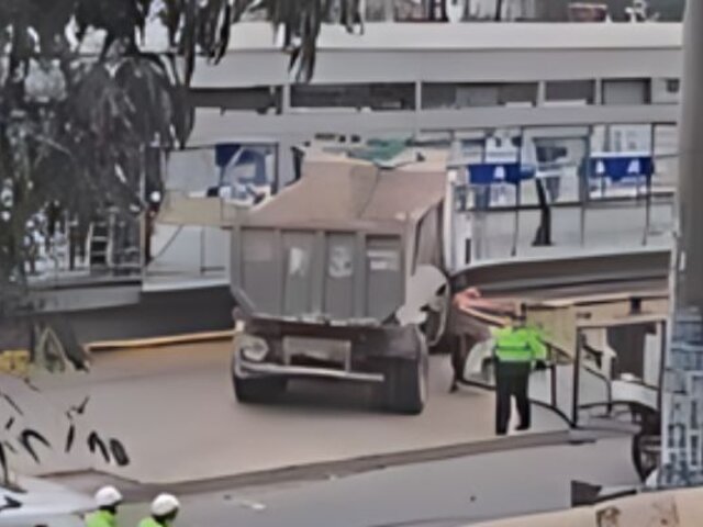 Se ha reportado el choque de un camión volquete contra las rejas que dividen la vía exclusiva del Metropolitano, en la estación Independencia.