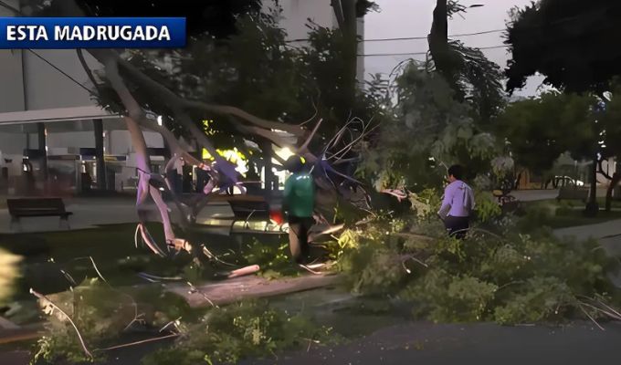 Esta madrugada se reportó la caída de una de las ramas de un árbol, ubicado en la cuadra 9 de la avenida Javier Prado, sobre unos cables. Este incidente ha dejado a varios edificios y negocios sin luz.