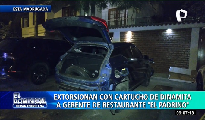 Las extorsiones no tienen cuando acabar. Delincuentes detonaron la madrugada de este domingo un artefacto explosivo en el vehículo del gerente general de la cadena de restaurantes y discotecas "El Padrino", en el distrito de San Juan de Lurigancho.