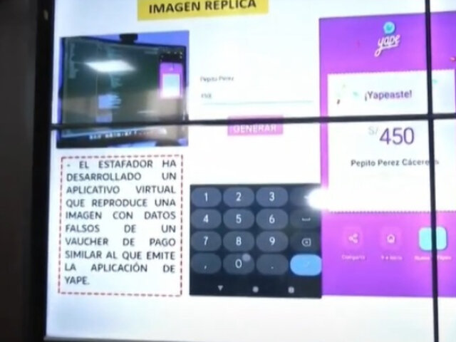 Delgado mencionó que los estafadores usan un aplicativo virtual para simular con datos falsos un voutcher de pago. "Aprovechan que en los establecimientos comerciales está publicado el nombre y número de teléfono del titular de la cuenta a quien realizarán el pago", dijo.