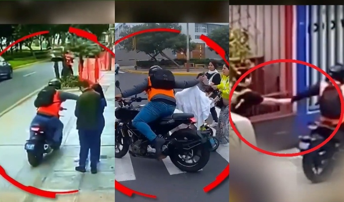 Cámaras de seguridad captaron el preciso momento en que ladrones en motocicleta portando el chaleco naranja que exige el Ministerio de Transportes y Comunicaciones (MTC) robaroncelulares a transeúntes en varios puntos de Lima.