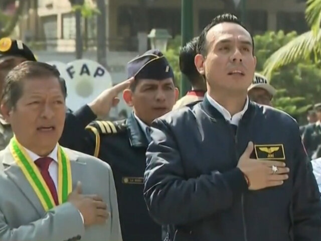 El presidente de la República, José Jerí, participa la mañana de este domingo 23 de noviembre, la ceremonia de izamiento de la bandera y entonación del himno nacional en el distrito de Lurigancho-Chosica.