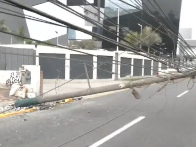 Atención transeúntes y conductores. Debido a un accidente de tránsito, un poste que sería de alumbrado público terminó derribado durante la madrugada de este domingo en la avenida El Golf Los Incas, en Surco.