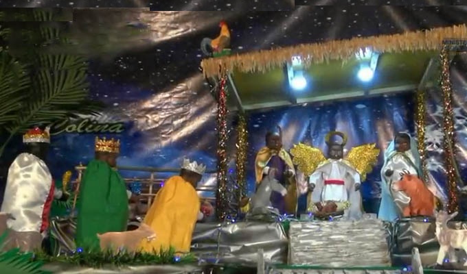 Cientos de pobladores y turistas visitan diariamente, en la Plaza de San Vicente de Cañete, un singular nacimiento afroperuano, que llama la atención por sus cuidados detalles, adaptados a las costumbres de esta ciudad.