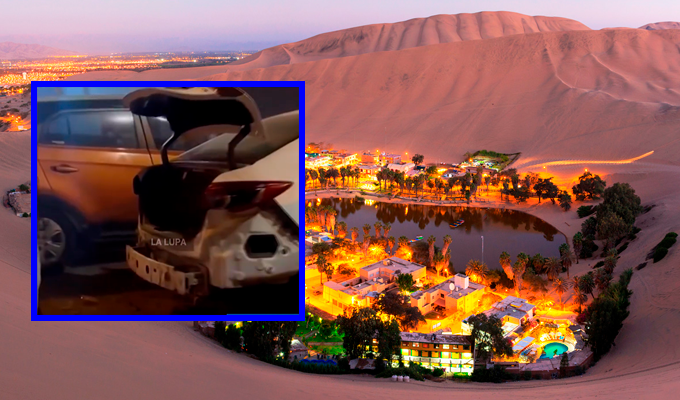 La madrugada de este domingo 24 de agosto, un atentado con explosivos estremeció la zona turística de la Huacachina, en la región Ica. El artefacto fue detonado en las inmediaciones de la discoteca Hakuna Matata, uno de los locales más concurridos del balneario, y dejó varios vehículos seriamente dañados en la parte delantera y trasera. El hecho ha causado gran preocupación entre vecinos, turistas y autoridades locales.