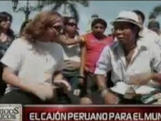 Centenares de personas, encabezados por el percusionista Álex Acuña, homenajearon al cajón peruano en la Plaza Mayor. Superaron el número de cajoneros del año anterior, por lo que esperan recibir el premio internacional.